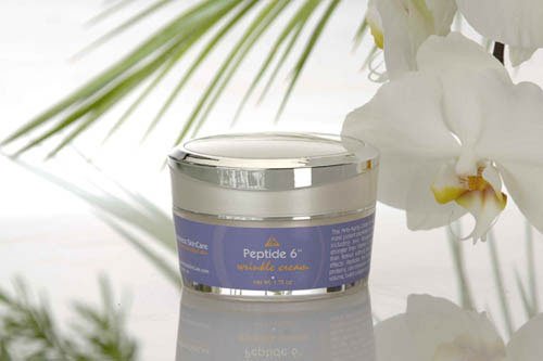 Peptide fragments are messengers of the natural process of tissue repair. Peptide 6 contains six of the most potent peptides currently available to address the affects of aging on the skin. Peptides improve wrinkle depth, wrinkle volume and roughness to name only a few of the benefits of this anti-aging skin cream.